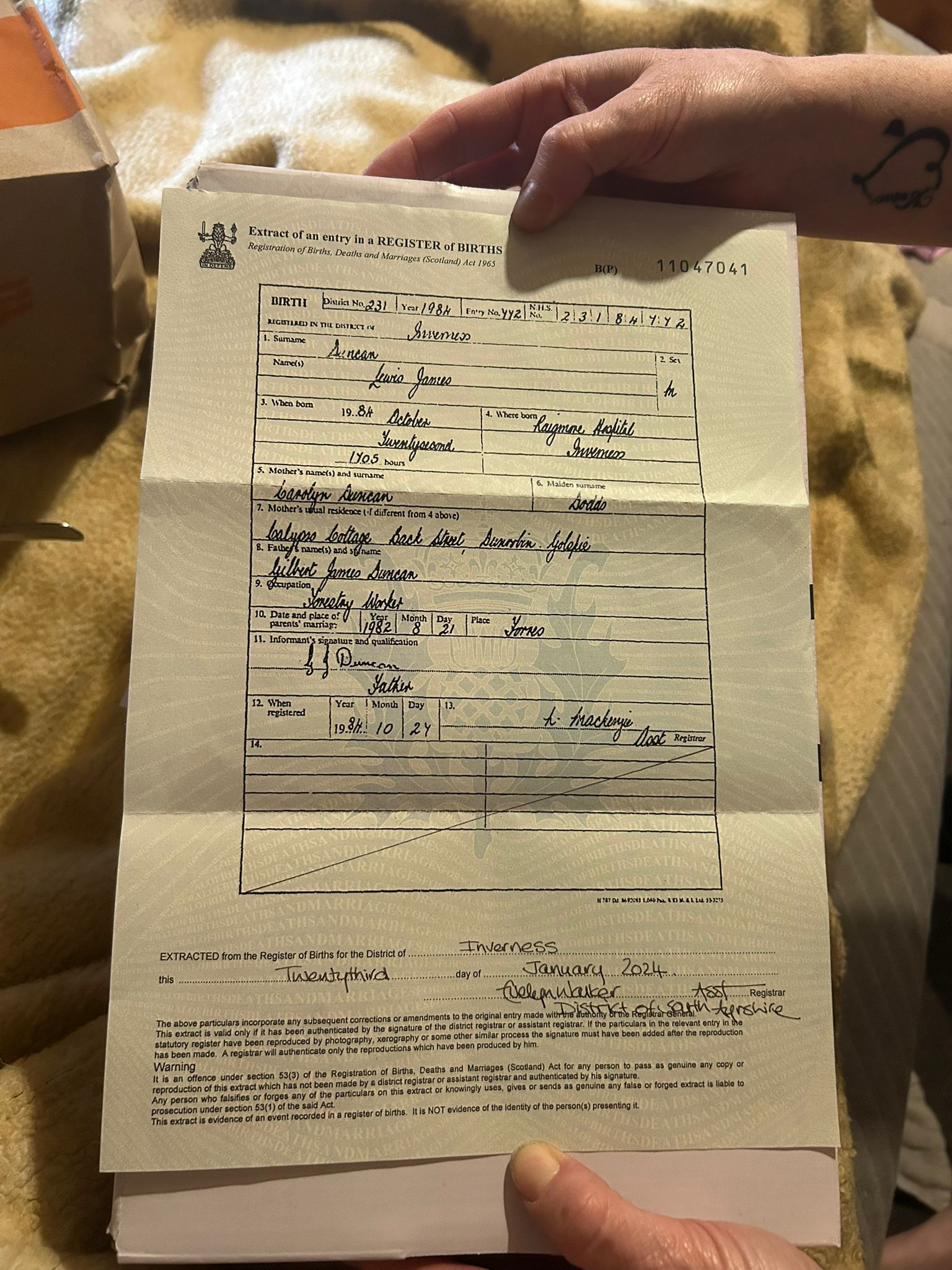 Lewis Duncan Birth C..>